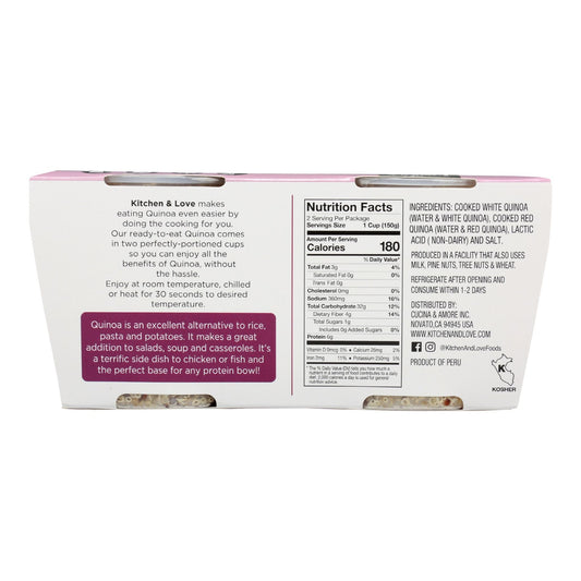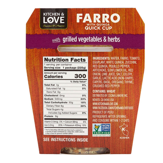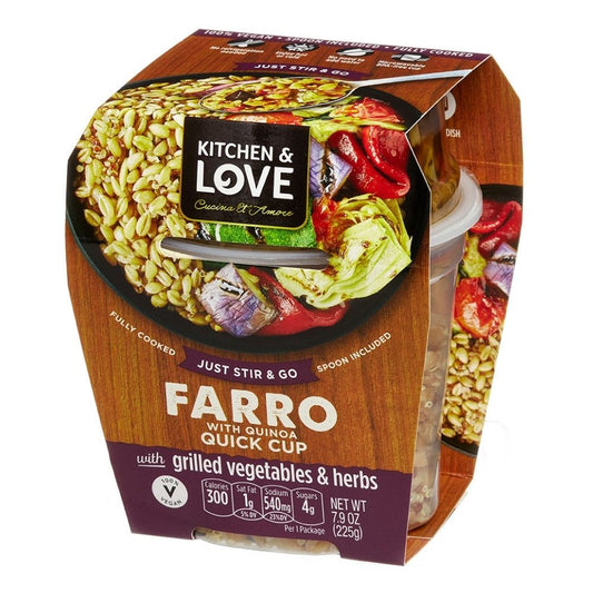 Kitchen & Love's innovative ready-to-eat Quick Cups come with a cup of perfectly cooked quinoa, farro or cauliflower with a tasty vegetable sauce to mix in. A handy-dandy spork is included for extra convenience. Simply open, stir & go! Enjoy it hot or cold in its BPA-free cup. They're incredibly versatile - use them as a side dish and personalize your bowls, salads, and more by adding your favorite veggies and protein.